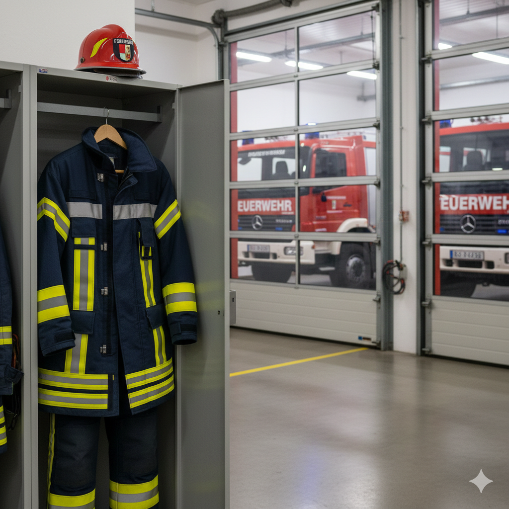 Verwaltung der persönlichen Schutzausrüstung, inklusive Größen, der einzelnen Ausrüstungsgegenstände wie Stiefel, Atemschutzhandschuhe, THL-Handschuhe, Überjacken, Überhosen, einfachen Jacken und Hosen, Gurt, Helm, Flammschutzhaube und Shirt.